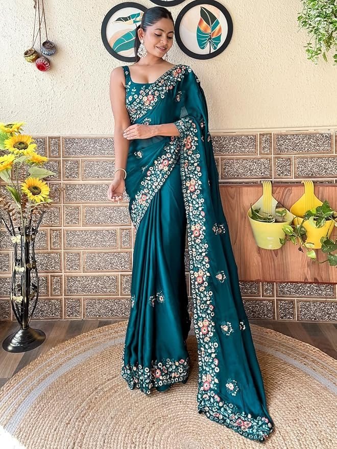 Women’s Multicolor Chiffon Embroidered Saree with Unstitched Blouse
